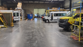 L'ensemble construit en panneau double peau est aujourd'hui louer à une entreprise de carrosserie industrielle. Béton lourde portée, porte sectionnelle de 5 M, local pour le personnel bureau, administratif. Alarme, climatisation .